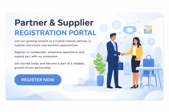 Join our growing network as a trusted channel partner or supplier and unlock new business opportunities. Register to collaborate, streamline operations, and expand your reach with our ecosystem.Get started today and become a part of a reliable, growth-driven partnership.